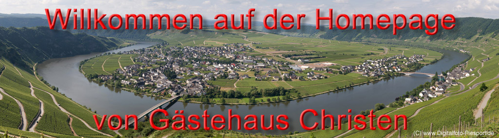 Alfons & Waltraud Christen Loreleyblick 2 54498 Piesport Telefon: (0 65 07) 23 26 Fax: (0 65 07) 93 87 54 www.christen-piesport.de |